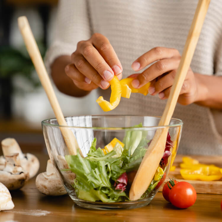 Variar as cores do feijão de cada cozimento, serão duas saladas simples e uma salada mista por dia, escolhidos conforme a safra, arroz e massas terão variação entre integral, comum e colorido.